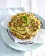 Add oil drop by drop. Stir in coriander, ##wasabi## and pink berries. Season to taste with lemon juice and sugar.