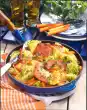 Wash the chives, dab dry and cut into small rolls. Clean, wash and dice the spring onion. Dice bacon finely and fry in a coated pan. Dice Brie and knead with cream cheese, bacon, spring onion, half chives and 2 tablespoons of puree flakes. Season to taste with salt and pepper. Spread 2 slices of Leberkäse with Obatzter, cover each with a slice. Boil 750 ml water with 1 teaspoon salt.