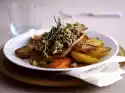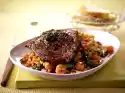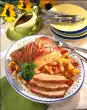 Wash the parsley, dab dry and cut the leaves into fine strips. Add vegetables and parsley to the sauce and heat up briefly. Arrange roast with vegetables on a plate.
