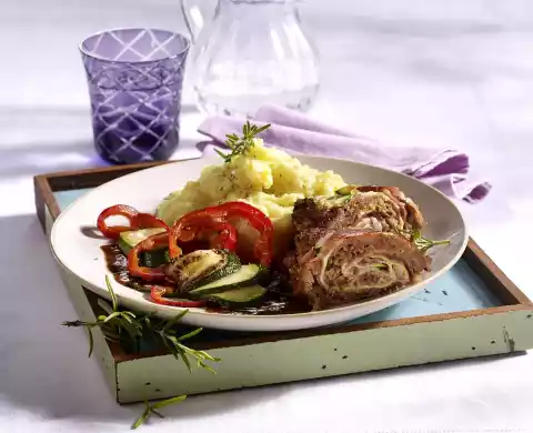 Bring to the boil again and season to taste with salt and pepper. Arrange roulades, mashed potatoes, vegetables and sauce on preheated plates and garnish with rosemary sprigs.