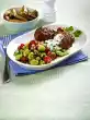 Clean the salad, wash and drain well. Wash and halve the tomatoes. Peel the red onion and cut into strips. Peel garlic and cut into fine cubes. Wash parsley, shake dry, pluck leaves from stems and chop. Season vinegar with salt, pepper and sugar, stir in mustard. Fold in 6 tbsp. oil. Mix salad, tomatoes and vinaigrette