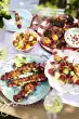 Remove skewers from the oven. Arrange salad on plates and place skewers on top. Serve with a tomato dip