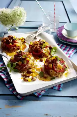 Knead minced meat, ground pork, egg and breadcrumbs together. Season with paprika powder, pizza spice and salt. Form 4 flat thalers (approx. 12 cm Ø each) from the mincing mixture and place them on a baking tray lined with baking paper