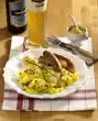 Stir 1 tsp. sour cream into the vegetables, season to taste. Serve everything. Garnish with parsley if necessary.