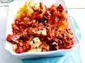 Cover with aluminium foil and bake in a preheated oven (electric range: 200 °C/ convection oven: 175 °C/ gas: level 3) for approx. 30 minutes. Sprinkle the casserole with cheese and bake for another 10 minutes. In the meantime, wash the chives, dab dry and cut into small rolls, except for a few stalks for garnishing.