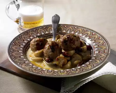 Heat the dumplings in it. SpƤtzle or mashed potatoes taste good with them.