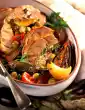 Remove the mould, toss the vegetable pieces in the oil. Add the tomatoes and peaches and bake for another 20-25 minutes. Mix yoghurt and lemon juice. Peel 2-3 cloves of garlic and press them through a garlic press to make yoghurt.