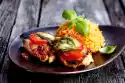 For the roast potatoes peel, wash and dice the potatoes. Heat clarified butter in a pan. Fry the potatoes for 20-25 minutes while turning. Season with salt and pepper.