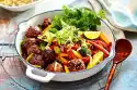 For the meatballs, peel and finely dice the onion. Knead minced meat, egg, breadcrumbs, mustard and onion, season with salt and pepper. Form 12 meatballs from the mixture. Heat 2 tablespoons of oil in a second large pan and fry the meatballs for about 15 minutes.