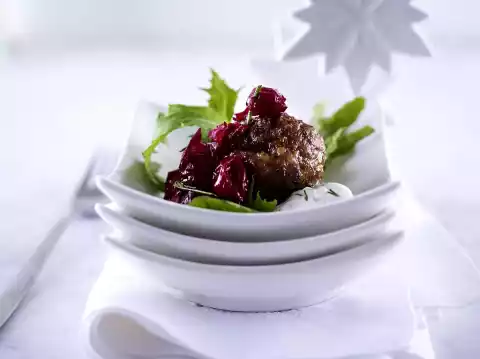 Fry the balls in it all around for about 10 minutes. Serve with dill sour cream and cranberry compote on salad.