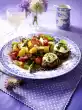 Form approx. 16 small balls from the minced dough and press 1/2-1 teaspoon of cheese mixture into the middle of each ball. Heat 4 tablespoons of oil in a frying pan. Fry the balls for about 6 minutes, turning them over. Cover and fry for another 6-7 minutes. Finally, stir the remaining basil into the hot frying fat