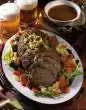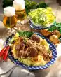 Squeeze the buns well. Knead minced meat, onion-garlic mixture, bread roll and eggs to a smooth mass. Season with salt and pepper. Form a flat loaf and place it on a fat pan coated with 1 tablespoon of oil.