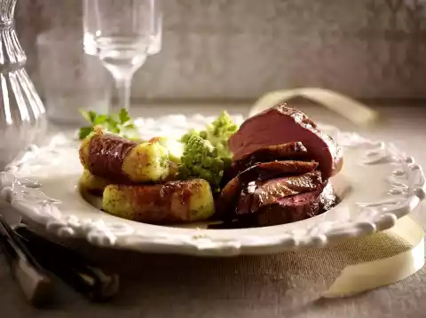 Pour the frying fat into a small bowl, except for about 1 tbsp. Re-heat the remaining frying fat. Fry pork and beef fillet in it one after the other for 3-4 minutes until brown, season with salt and pepper.