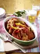 Heat the oil in a coated pan. Fry the medallions in it for 3-4 minutes. Take them out, place them in a flat casserole dish and season with marjoram. Cover with tomatoes and cheese. Cook broccoli in boiling salted water for about 5 minutes.