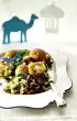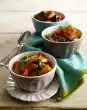 Heat 1 tablespoon of oil in a coated frying pan. Sauté the bell peppers, braised cucumbers and mushrooms for 3-4 minutes. Add 1 tbsp. oil to the pan and fry the aubergines and cherry tomatoes. Add tomato paste, chopped herbs and stock and bring to the boil.