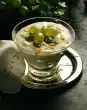Heat the squeezed gelatine. First mix with four tablespoons of melon puree. Then stir into the remaining puree liquid. Carefully pour the melon puree onto the coconut-vanilla cream and chill for ten minutes.