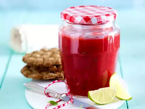 After about 3 minutes, add mint and lime zest. Fill jam immediately into clean jars, close them tightly and place them on the lid for about 10 minutes.