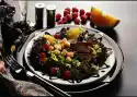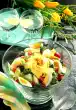 Clean and wash the tomatoes. Remove the stalk base. Cut the tomatoes into slices. Cut melon into slices and remove seeds. Cut the flesh (up to 4 slices) from the skin.