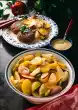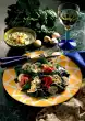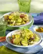 Cut into small pieces. For the marinade, wash the basil and chop finely except for a few leaves for garnishing. Mix vinegar and basil. Season with salt, pepper and sugar. Whip the oil into it.