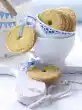 Separate two eggs. Chill the egg whites. Whisk egg yolk and 2 tbsp. water. Spread dough circles with it. Bake in hot oven for 12-15 minutes. Let them cool down.