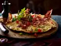 Heat the fat in a pan and sauté the onions. Add sausage and pepperoni and fry. Add tomato cubes and fry briefly. Season with salt and pepper and keep warm