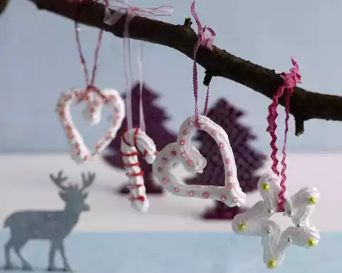 Decorate immediately. Leave to dry for 24 hours at room temperature. Dust with 1 tablespoon of icing sugar. Hang on bows and ribbons at will on branches during the Advent season
