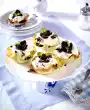 Crumble 1 meringue cake. Pour the mascarpone cream into a piping bag with star-shaped spout. Pour 1 layer of cream into each tartlet, cover with some raspberries. Repeat the procedure 2 times. Sprinkle with meringue crumbs and lime zests.
