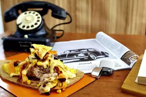 Sprinkle with chips. Bake the minced steaks for another 10 minutes. Remove. Arrange steaks with remaining cheese sauce.