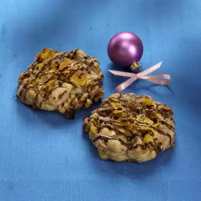 Meanwhile, chop the chocolate coating roughly and melt it in a hot water bath. Pour the couverture into a freezer bag, cut off a small corner and spray strips onto the cookies.