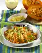 Wash the millet and let it drain on a sieve. Peel onion and garlic. Chop the onion finely, press the garlic through a garlic press. Heat the fat in a saucepan and sauté the onion and garlic. Add millet, sauté briefly and deglaze with broth. Season with a little salt and pepper, bring to the boil briefly and simmer covered over a low to medium heat for about 15 minutes.