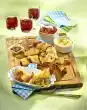 Sprinkle with the rest of the Gouda and fry for 20-30 minutes. Cut the chopped roll into about 20 slices and arrange on a plate. Garnish with fresh oregano and serve hot or cold.