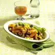 Gas: stage 3) bake for approx. 10 minutes. Add spring onions to the pan and season with pepper. Serve with herb bread