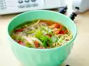 Wash, drain, clean and break the green beans. Clean, wash and drain the fennel, zucchini, spring onions and mangetouts. Cut fennel into strips, courgettes into slices or pieces and spring onions into thick rings. Peel onion and garlic. Dice onion, chop garlic finely