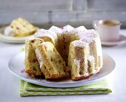 Bake in the preheated oven (electric cooker: 175 °C/ convection oven: 150 °C/ gas: level 2) for 25-35 minutes (stick test). Take out and let cool down for about 10 minutes. Turn out onto a cake rack and let it cool down. Dust with icing sugar and pink sugar