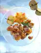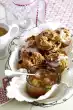 Place the tartlets on a baking tray and bake in a preheated oven (electric range: 175 °C/ gas: level 2) for 25-30 minutes. Remove from the oven and let them cool down on a grid. Stir icing sugar and 2-3 tablespoons of water until smooth and brush some of the tartlets with it. Decorate the tartlets as you like with chocolate lentils, ground pistachios and sugar flowers. Makes 17 pieces