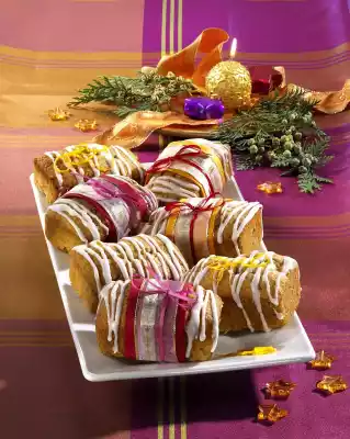 Grease a mini-box form (6 troughs, each containing 150 ml) and sprinkle with breadcrumbs. Spread the dough evenly into the wells. Bake in the preheated oven (electric cooker: 175 °C/ convection oven: 150 °C/ gas: level 2) for approx. 35 minutes. Remove from the oven and leave to cool for approx. 15 minutes on a cake rack in the tin. Remove the cakes from the tin and let them cool down completely. Stir icing sugar and liqueur until smooth. Pour the icing into a freezer bag, cut off a small corner. Decorate the cake with the icing and orange peel or ribbon and ribbon