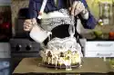 Place the ring on the tray. Pour in 1/6 (1-2 tbsp.) of the cookie crumb mixture each and press down lightly using the back of a tablespoon as a base. Carefully pull up the ring. Make 5 more bases from the remaining crumb mass.
