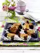 Bring milk, 125 ml water, 1 pinch of salt and butter to the boil in a saucepan. Add the flour at once and stir with a mixing spoon until the dough separates as a lump from the bottom of the pot. Put the dough into a mixing bowl and immediately stir in 1 egg. Leave to cool for 10 minutes and stir in the remaining eggs one by one. Put the choux pastry into a piping bag with a large star-shaped spout. Line 2 baking trays with baking paper. Spray about 12 tuffs on each. Bake in the preheated oven (electric cooker: 225 °C/ convection oven: 200 °C/ gas: see manufacturer) one after the other for about 20 minutes. Do not open the oven during the baking time! Take out and let cool down