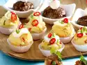 Wash the tomatoes. Put a mozzarella ball and a cherry tomato on 30 skewers each. Take the meatballs out of the oven, put one skewer on each and arrange them in small bowls.