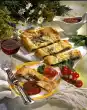 Mix sour cream and eggs, season with salt, pepper and curry. Place the puff pastry sheets in 4 greased ovenproof baking trays (16 cm Ø), spread the sauerkraut on top, add the sour cream and egg icing and bake in a preheated oven (electric range: 200 °C / gas: level 3) for approx. 35 minutes. After half of the baking time cover the edge of the dough. Wash the dill, dab dry and cut finely. Sprinkle mini-quiche with dill and serve garnished with slices of lime as desired