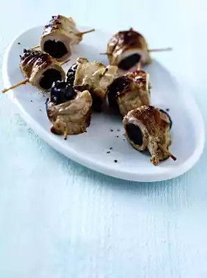Fill each cutlet with 2 plums one after the other, roll up and pin with 2 wooden skewers. Heat the oil in a pan and fry the cutlets for about 10 minutes. Remove the finished roulades, let them rest for a short time and cut them in half in the middle.