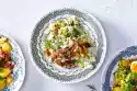 Remove the muffin tray from the oven. Spread the salmon in the pastry trays. Pour herb icing evenly over the salmon.