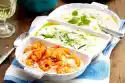 Meanwhile wash the salmon fillet, dab dry and cut into small cubes. Wash the herbs, shake dry and cut finely. Whisk sour cream and 3 eggs. Season with salt and pepper. Stir in dill and chives.