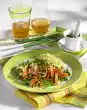 Wash the basil, dab dry. Cut half into fine strips. Drain the pasta and let it drain. Mix into the tomato vegetables. Season to taste again. Sprinkle with basil strips.