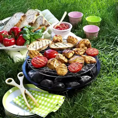 Mix tomatoes, garlic and ketchup, season with salt and pepper. Wash basil, dab dry and cut into fine strips. Mix into the salsa. Season meat with salt and pepper. Cook with halved tomatoes on the hot grill while turning for 6-8 minutes. Roast bread on the hot grill if necessary. Serve chicken filet with tomato halves, salsa and bread