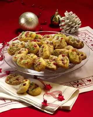 Press the balls slightly flat on one side so that they look like small stollen. Whisk the egg white. Brush the stollen with the egg white and sprinkle with the fruit mix. Bake the trays one after the other in a preheated oven (electric cooker: 175 °C/ convection oven: 150 °C/ gas: level 2) for about 20 minutes. Let the Mini Stollen cool down and dust with 1 teaspoon of icing sugar