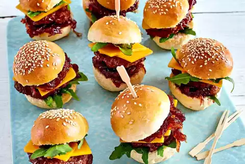 Season minced beef with 1 1⁄2 tsp salt and 1 tsp pepper. Form approx. 30 mini rissoles from it. Heat the oil in a large pan. Fry the meatballs in it in portions on each side for about 3 minutes. Drain on kitchen paper.