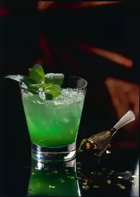 Pour sugar syrup, peppermint syrup and lemon juice with plenty of crushed ice into a glass and top up with mineral water. Garnish with mint.