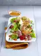 Clean and wash spring onions and cut into fine rings. Pluck the salmon into small pieces. Remove potatoes from the stock. Use the stock for other purposes. Mix sauce, potatoes, spring onions and salmon.