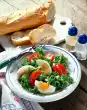 Arrange the salad ingredients in the bowl. Mix yoghurt and lemon juice, season with salt and pepper. Wash the chives and cut into fine rolls. Sprinkle some over the salad, add the rest to the sauce and serve separately to the salad.